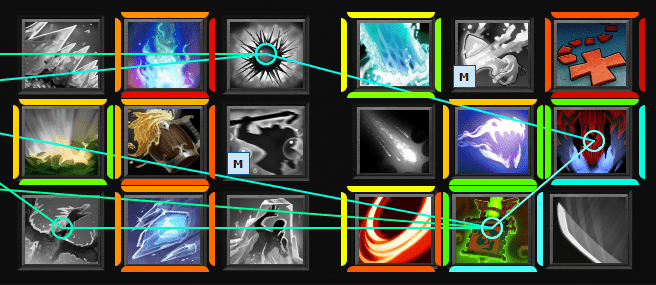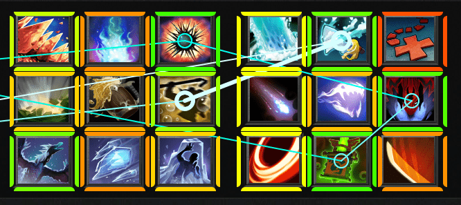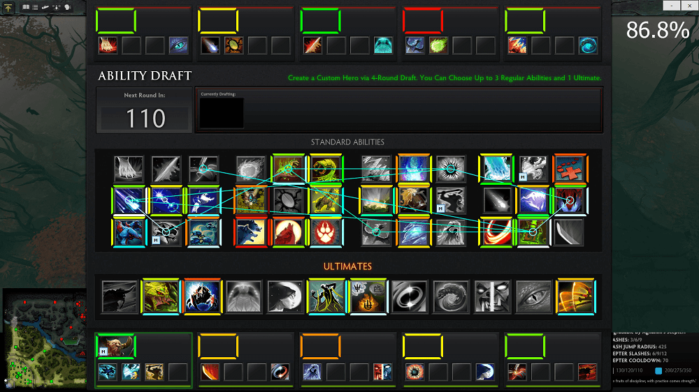By default, the top and left sides of an ability frame tell you the win rate for that ability. The bottom and right sides tell you how well the ability pairs with your hero and abilities. The top 10 combos are connected by lines.